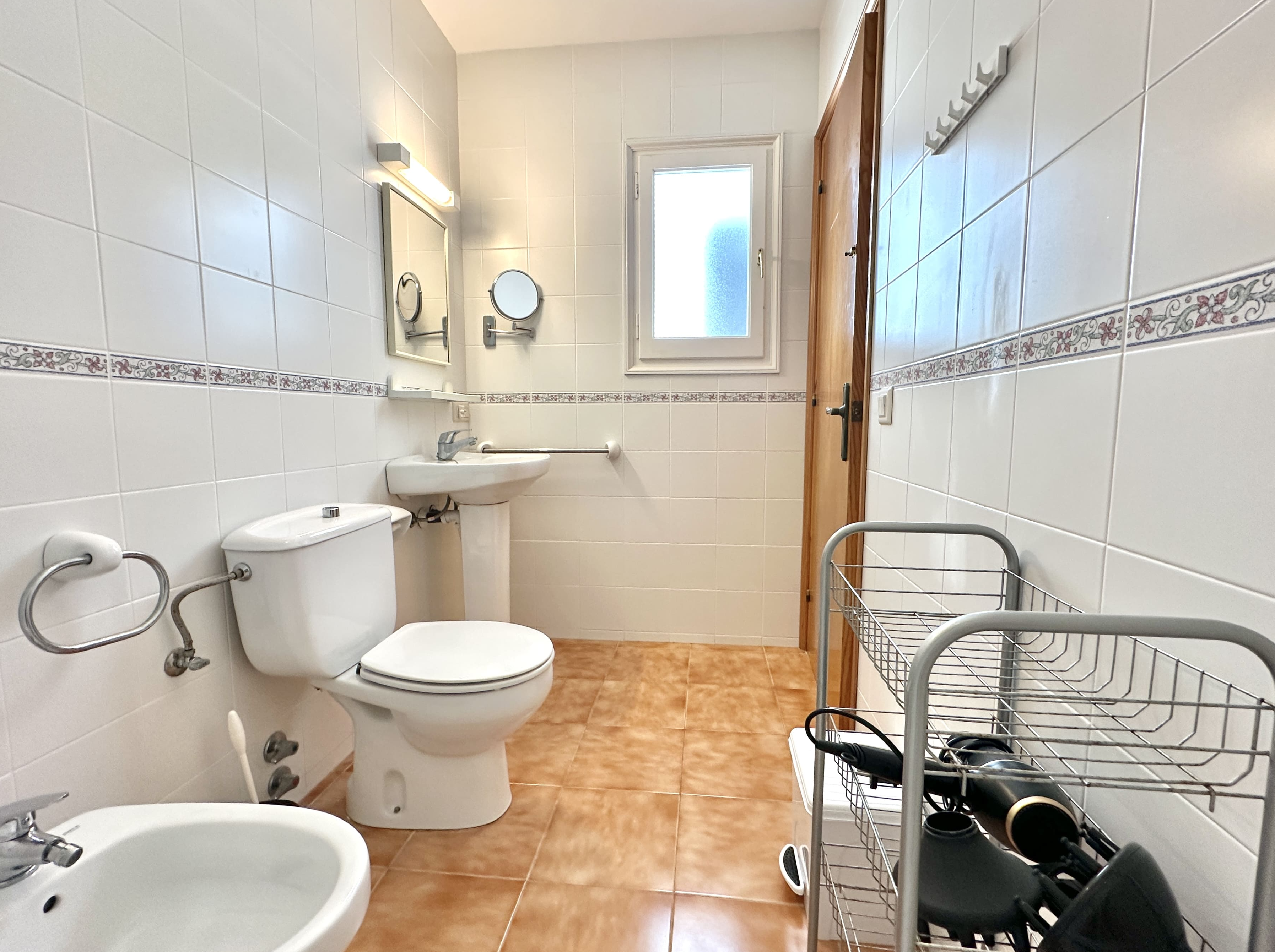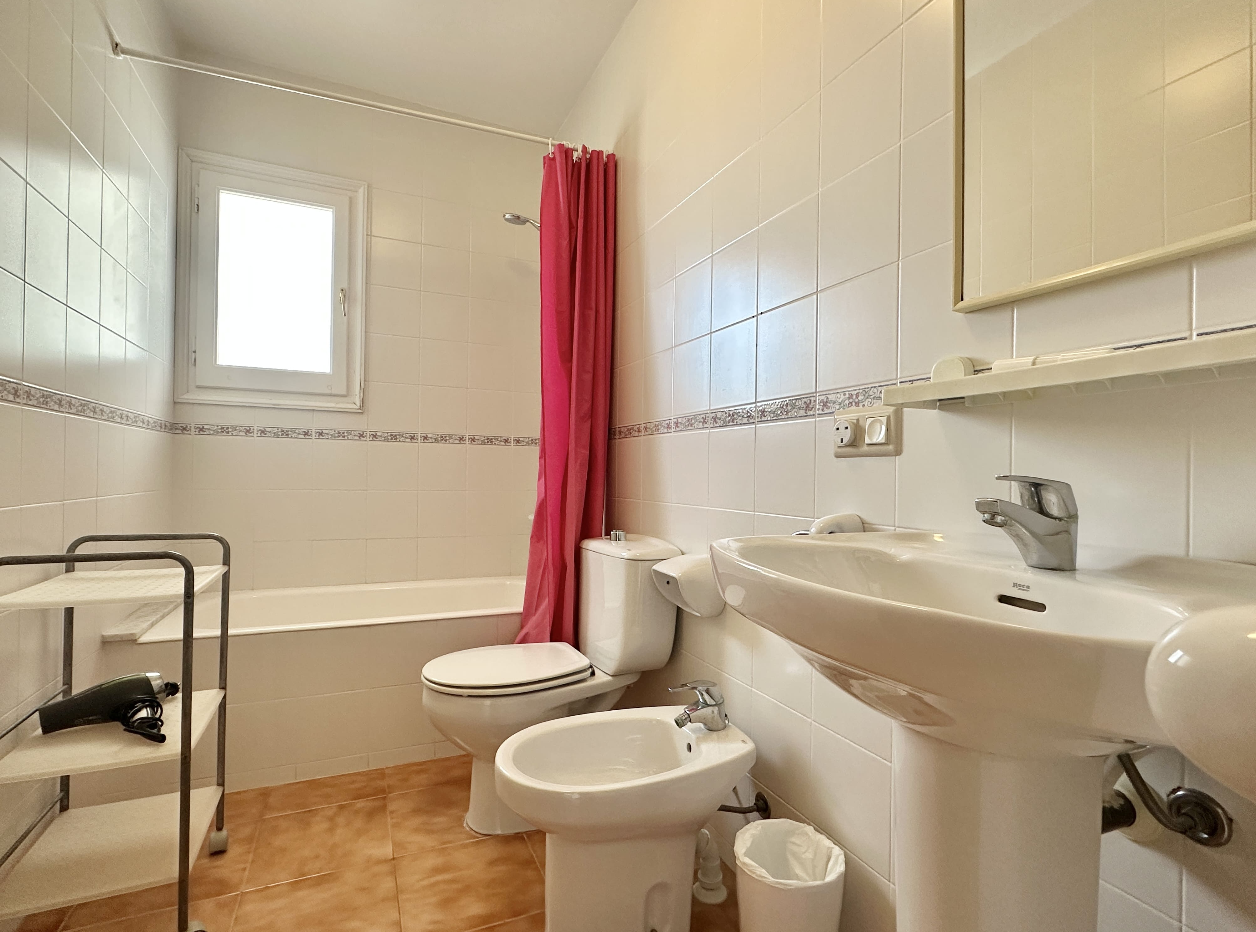 Cozy and spacious beachfront apartment in the beautiful White Sands (Arenas Blancas) complex in Arenal d’en Castell. Features 3 double bedrooms, 2 full bathrooms, a kitchen, dining room, and a covered terrace with sea views.